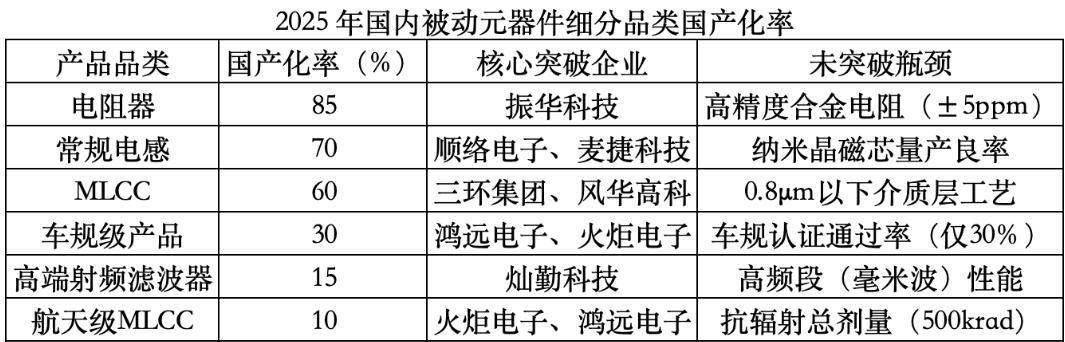 据悉,增长核心主要来自车规级MLCC、AI服务器用高功率电感、高压薄膜电容等高端品类,但车规级、高端射频等细分领域国产化率仍不足30%,存在较大替代空间。随着国内企业技术突破、产能释放及下游新兴需求的持续拉动,预计2025年中国被动元器件市场规模将达到1604亿元,继续巩固全球最大单一市场地位。
