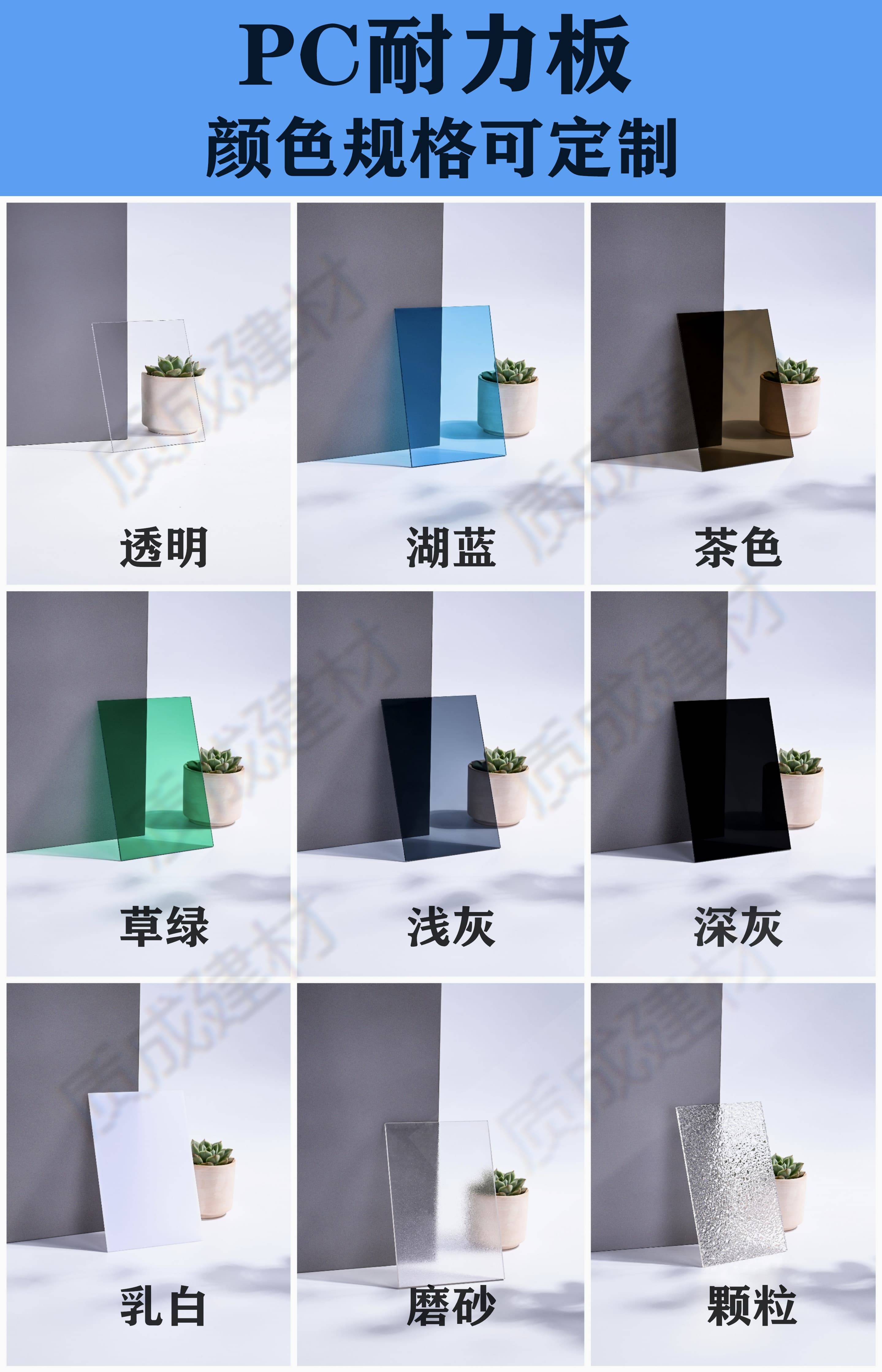 佛山市质成新材料科技有限公司在 PC 耐力板领域具有显著的优势。该公司专注于 PC 系列板材的研发、生产与供应,涵盖 PC 耐力板、PC 透明瓦、PC 阳光板、PC 扩散板四大核心品类,产品体系丰富,规格齐全。PC 耐力板包含卷材、雨棚板、平板/片材三种形态,有多种宽度、厚度可供选择,颜色也十分多样,能够满足不同用户的个性化需求。
